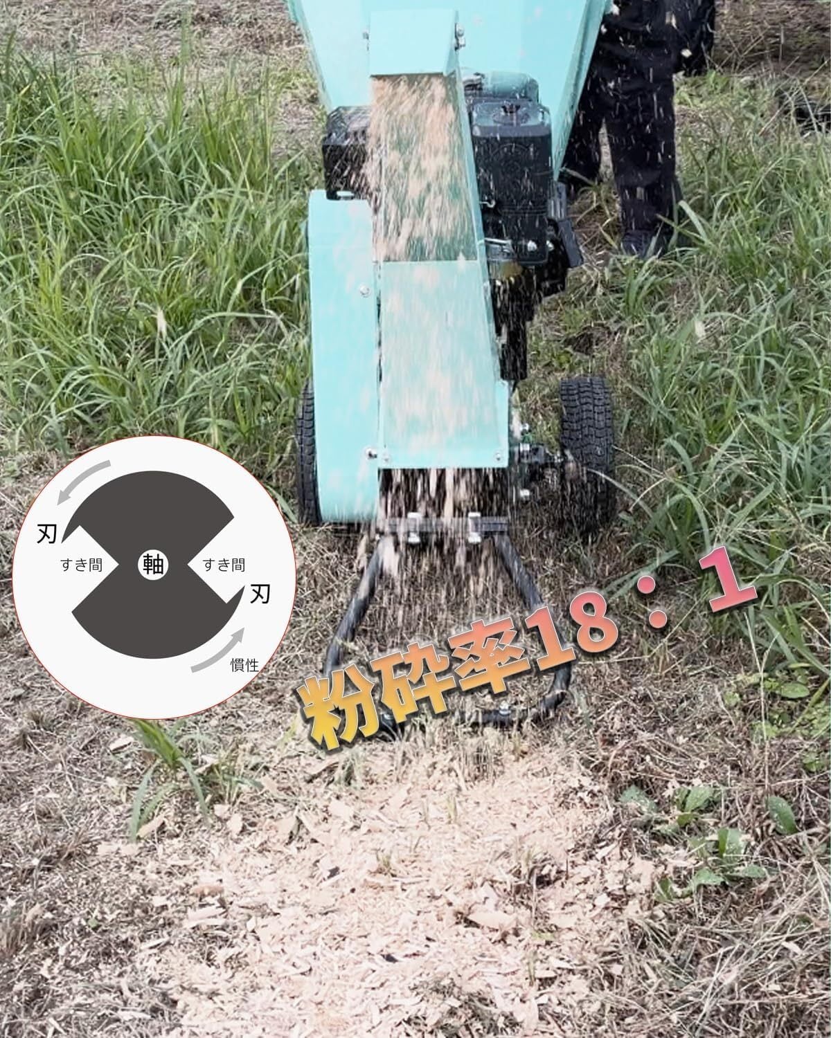 【110mm枝/竹/木粉砕能力!★】ウッドチッパー Kareyouガーデンシュレッダー エンジン粉砕機は、最大110mmの太さの枝や竹、木材を手軽に粉砕可能なパワフルな機械です!7馬力のエンジンが搭載されており、農作業、造園、家庭のゴミ処理などさまざまなシーンで活躍します。