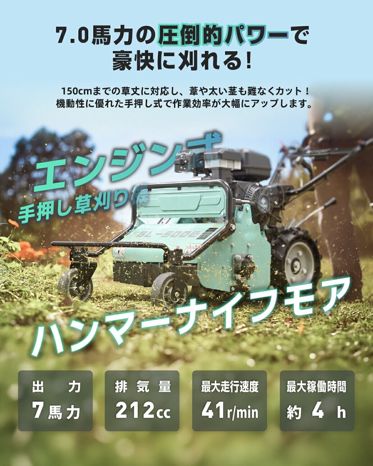 草刈機 芝刈り機 エンジン式 自走式 ホンダエンジン ハンマーナイフモア 倒れた草に強い 自走式草刈機 50cm刈幅 212ccエンジン搭載 前進後進1.8KM/H 2.48KM/H 高さ10-80mm調整可 軽量91kgモデル 静音 低振動 省エネ 高耐久 長寿命 人気 売れ筋 おすすめ 簡単操作 送料無料